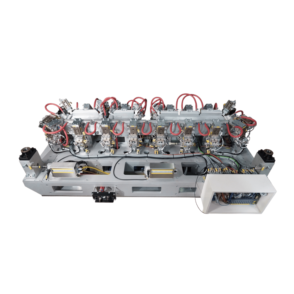 The Supersonic Welding Machine (Interior and Exterior) is made up of two stations: the first station picks and places parts, while the second station is for welding. This machine utilizes a servo motor mechanism and a cylinder drive.